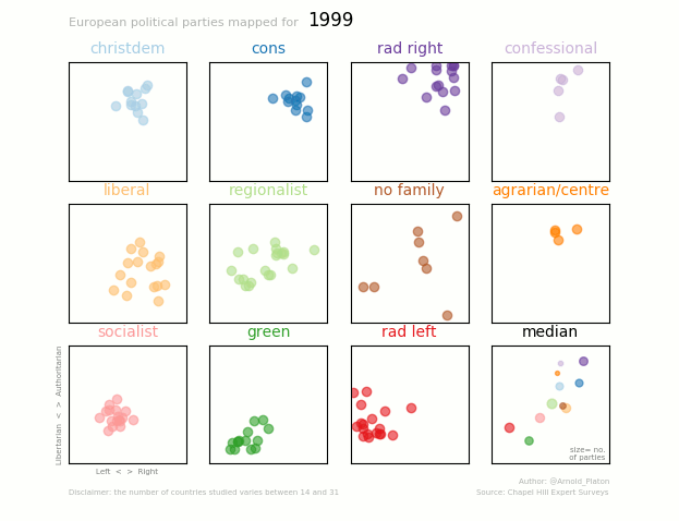 Ia sa vedem cam cum au evoluat ele (in UE) in ultima vreme … 1999 – 2017, culorile sunt precum in compasul politic de mai sus.
