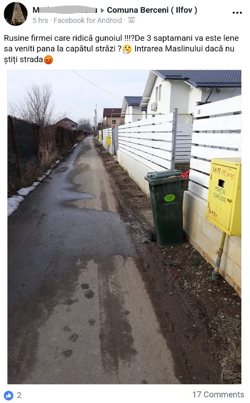 - iar gunoierii sa ti le “alinieze” pe unde apuca, prin mijlocul drumului, precum fac acum cu singurul cos de gunoi, care sta acolo pana vii tu de la servici (pt. cei ce lucreaza)