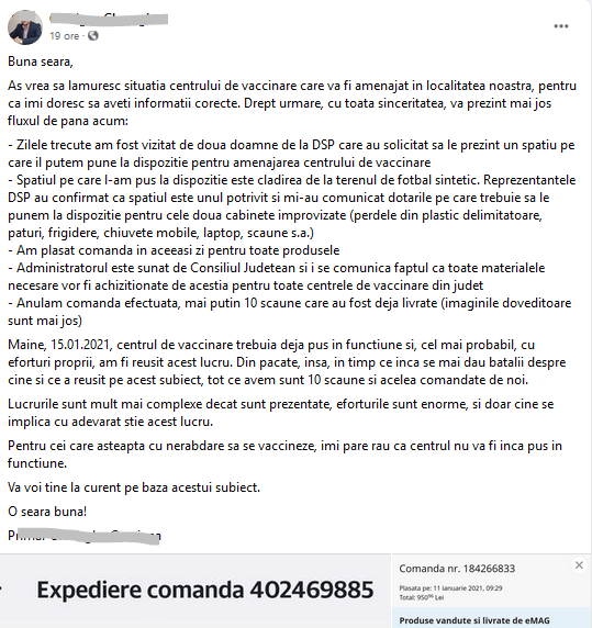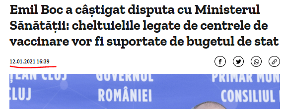 - si mai da un interviu la Digi24 unde se plange ca CJI nu i-a trimis doua frigidere si un dulap …la nici macar o zi (14 Ianuarie) de la hotararea CJI (13 Ianuarie), cand oficial vaccinarea ar trebui sa inceapa pe 15 Ianuarie