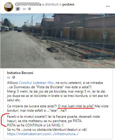 Au semnalat mai multi CETATENI ca asta NU ESTE Pista de Biciclete, e o PROSTIE, iar “alesul” ce a afcut, ce stie mai bine …i-a ignorat.
