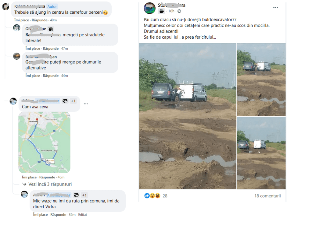 - evident ca si azi (Iunie 18) erau cu utilajele in mijlocul drumului incurcand tot traficul de pe drumeagul ala de doi lei numit DJ401 sau “bulevardul 1 mai”, dar ei …frezau de zor in mijlocul potopului (da, ploua in draci, cu bulbuci)