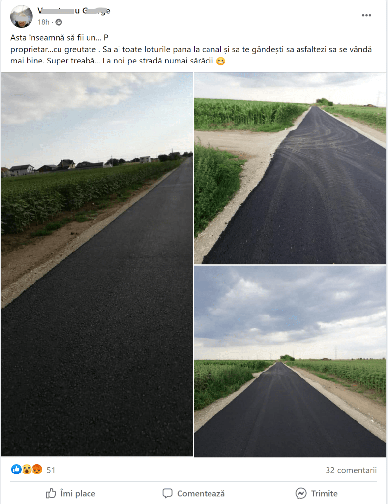 - sa asfalteze ruta care nu apare in desenele din Mai (de la “mall” ul comunei pana la canal si apoi la Rompetrol),