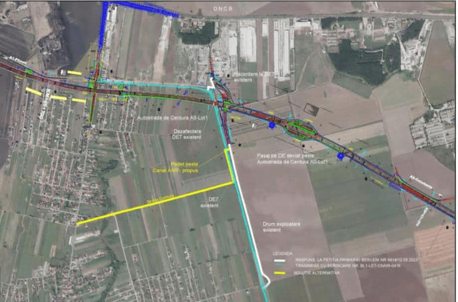 2023 Martie 08: “ruta PSDista” – Pentru ca se intetesc lucrarile la lotul 1 sudic al A0 (unul dintre cele mai ramase in urma loturi) se pare ca se contureaza si a doua alternativa la DJ401, pe la canalul de irigatii, dar ii trebuie un pod