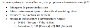 Nu apare in noua strategie de dezvoltare a Ilfov (2020-2023), dar apare (pag 60) in cea a comunei Berceni (Januarie 2021)