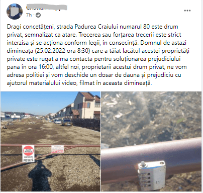 Observam un topic fierbinte de discutii referitor la faptul ca cineva le-a spart lacatul de la bariera pusa pe “drumul lor”.