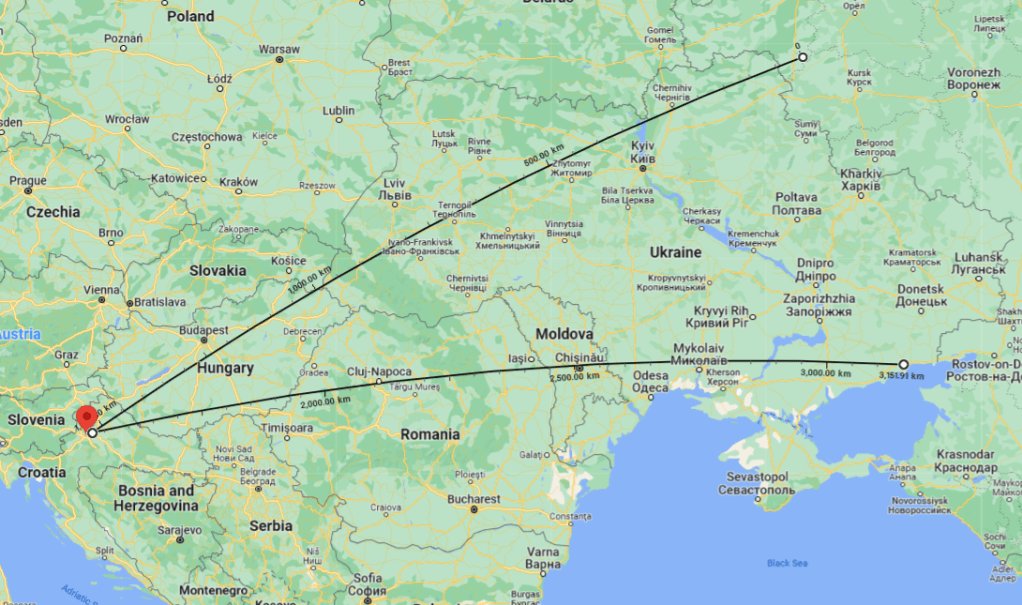 Revenind la traseul dronei, precum vedem pe harta de mai sus ar fi cam doua mari pozitii din care ar fi plecat aceasta drona “ucraineana”, presupunand ca nu a plecat din Belarus, si nici ca ar fi tras-o ucrainenii spre Rusia/Est dar drona s-a defectat si a luat-o …invers :); deci, am avea variante gen