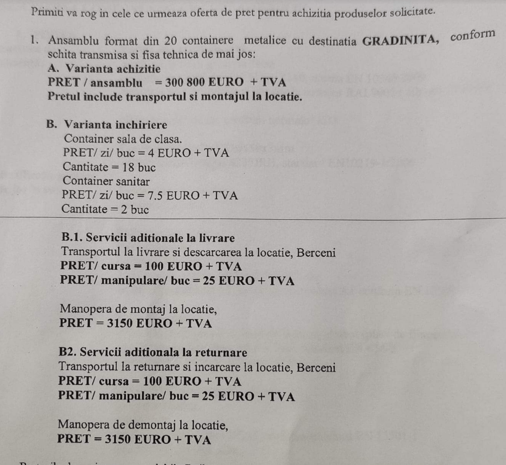 - nu face nimic in sensul maririi spatiilor de clasa/gradinita, de prin 2012-2016 asa, ca repede – repede, inainte de inceperea scolii, pe “forČatelea”, sa bage sub nasul Consililul Local niste spagi de clase modulare (20 containere), ca sa rezolve problema a 60 de copii “in plus, deodata, surprinzator”, cu …peste 300 000 euro!!